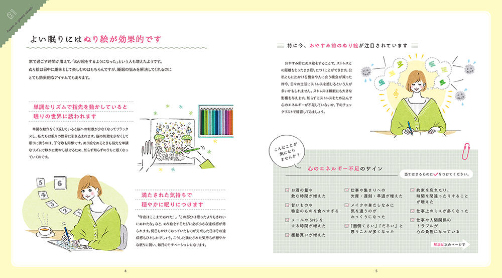 眠りへ誘う仕掛けも満載! 巻頭ページでは、コロナ禍からくるストレスに睡眠による正しいケアを睡眠コンサルタントの友野先生が教えてくれます。