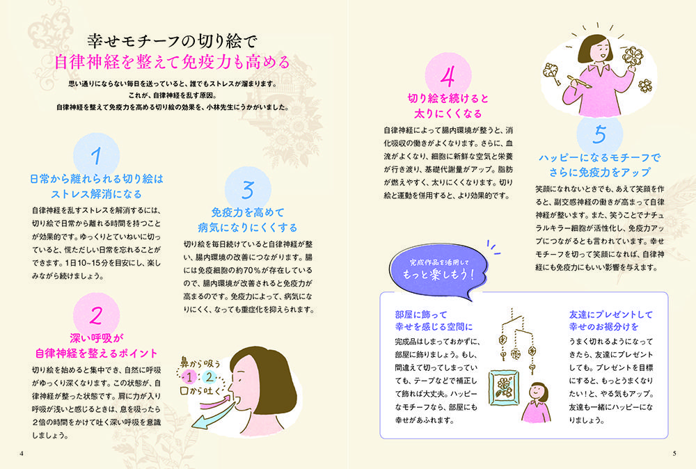 自律神経が整い、作品として美しい切り絵の本、大好評第2弾!今回は心が落ち着く素敵な花とかわいらしい動物の世界。