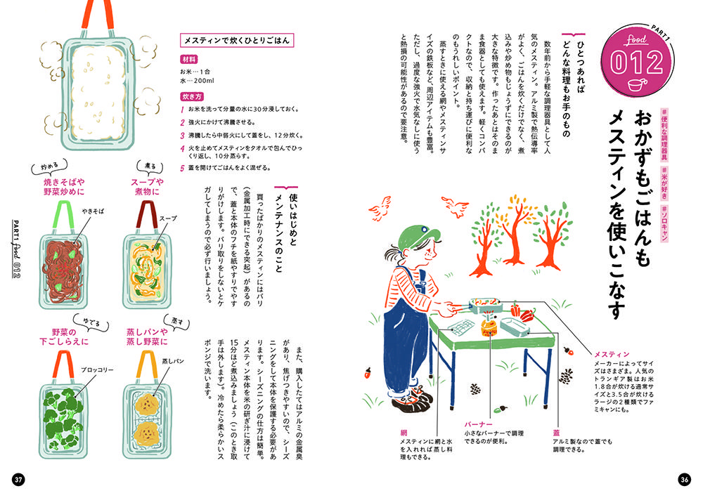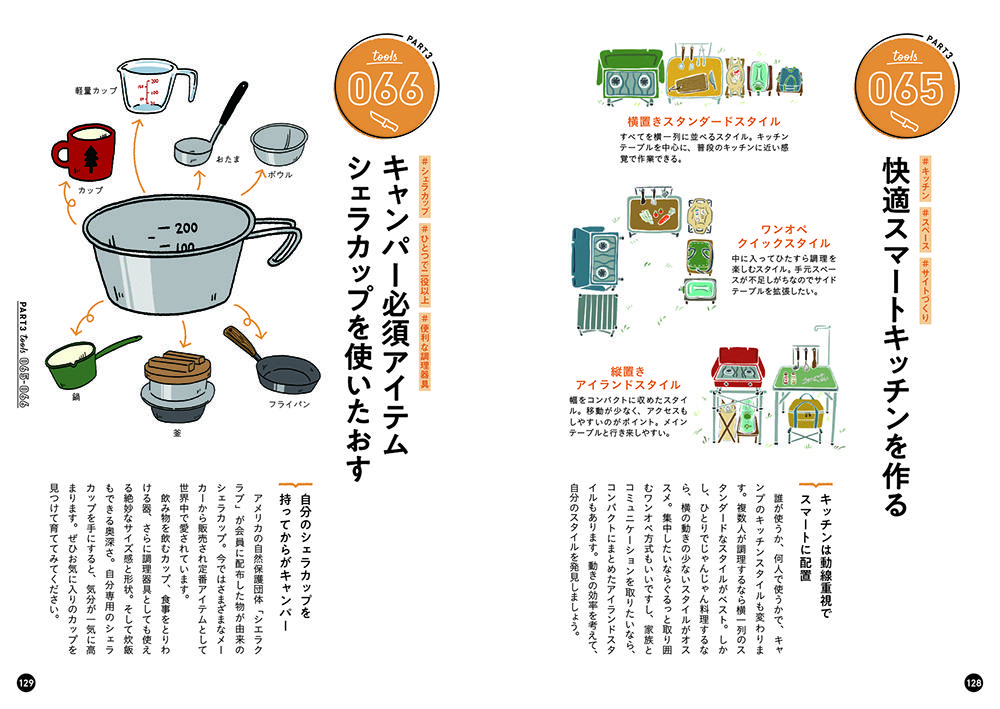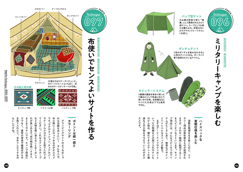 イラストいっぱいで眺めるだけでもキャンプ心が満たされます。