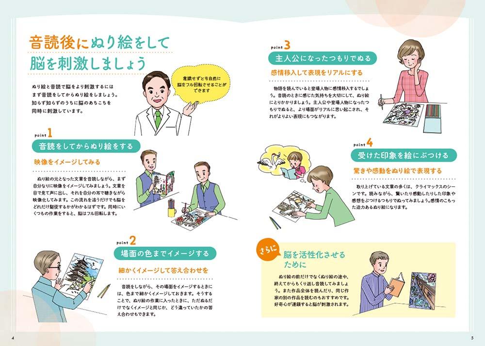ぬり絵+音読で脳のあちこちを同時に刺激します