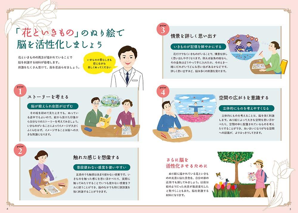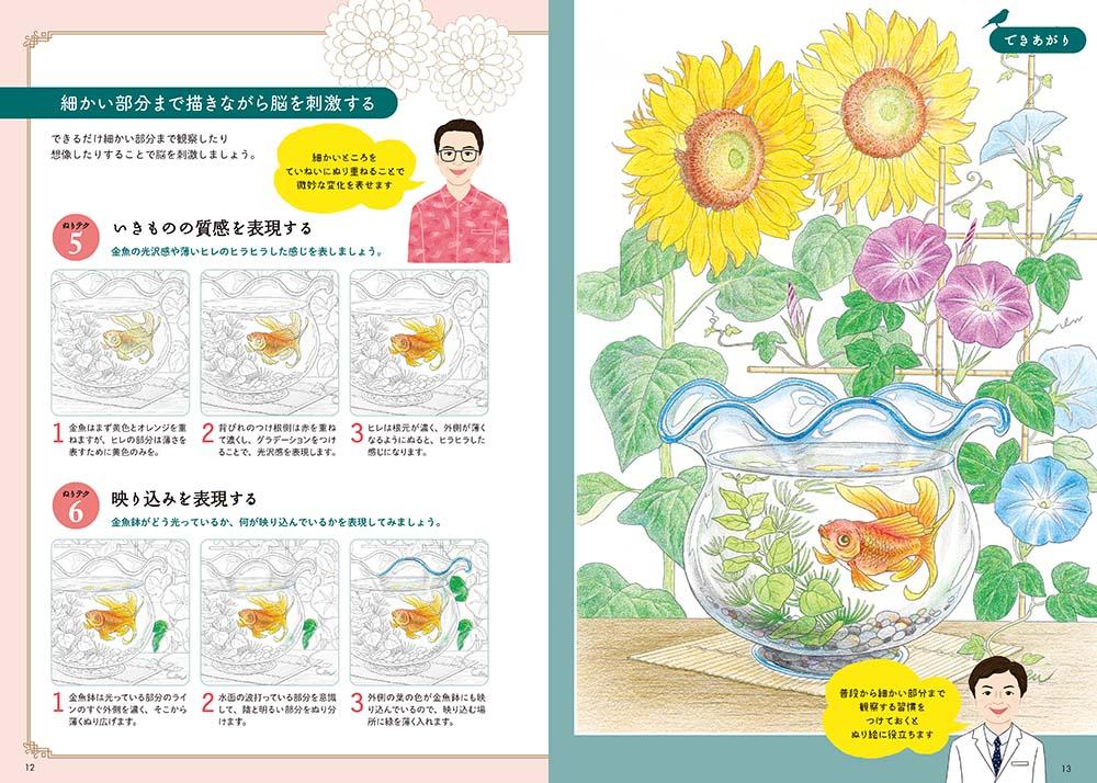 可愛いいきものと美しい花や景色のぬり絵に脳が若返る工夫がいっぱい!