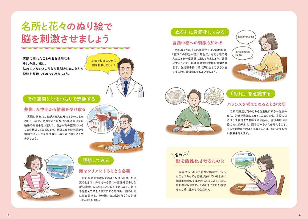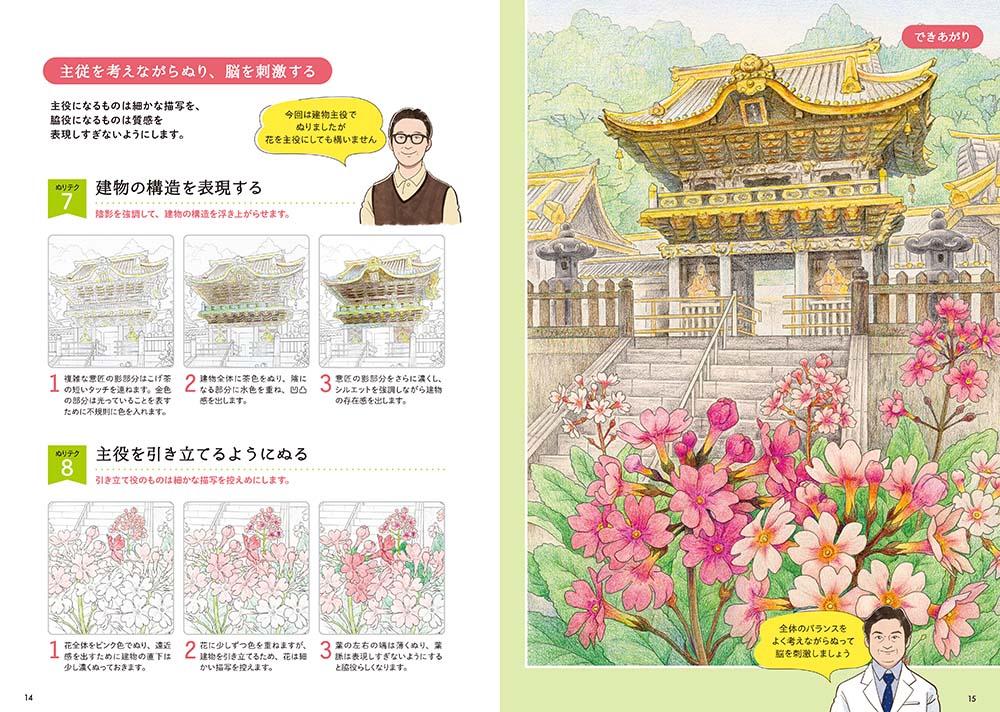 脳を効果的に鍛えます!脳がみるみる若返るぬり絵 名所と花々