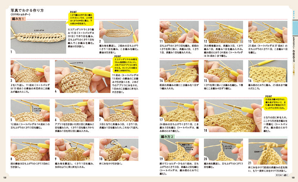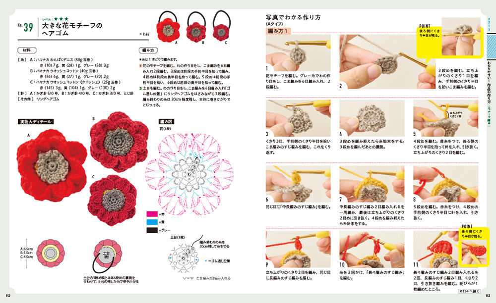 ◎本書の最大の特長は「作り方の解説」。オールプロセス写真で解説しているほか、実物大の編み目ディテール写真も入っているのでとてもわかりやすく、初心者でもかならず完成させることができます。また、かぎ針の基本と一部作品を動画で確認することができるのもうれしいポイントです。