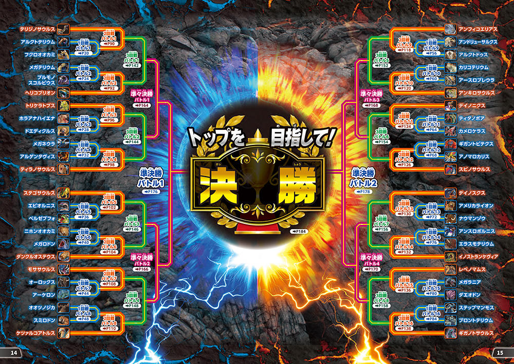 アルクトテリウム/フクロオオカミ/メガテリウム/フ?ルモノスコルヒ?ウス/ホラハイエナ/ドエディクルス/メガネウラ/アルゲンタヴィス/エピオルニス/ベルゼブフォ/ニホンオオカミ/メガロドン/オーロックス/アーケロン/オオツノジカ/スミロドン/アンドリューサルクス/アルクトドゥス/カリコテリウム/アースロプレウラ/ティタノボア/カメロケラス/ギガントピテクス/アノマロカリス/アメリカライオン/ナウマンゾウ/アンスロポルニス/エラスモテリウム/メガラニア/ダエオドン/ステップマンモス/ブロントテリウム/テリジノサウルス/ヘリコプリオン/トリケラトプス/ティラノサウルス/ステゴサウルス/ダンクルオステウス/モササウルス/ケツァルコアルトス/アンフィコエリアス/アンキロサウルス/デイノニクス/スピノサウルス/デイノスクス/イノストランケヴィ/レペノマムス/ギガノトサウルス