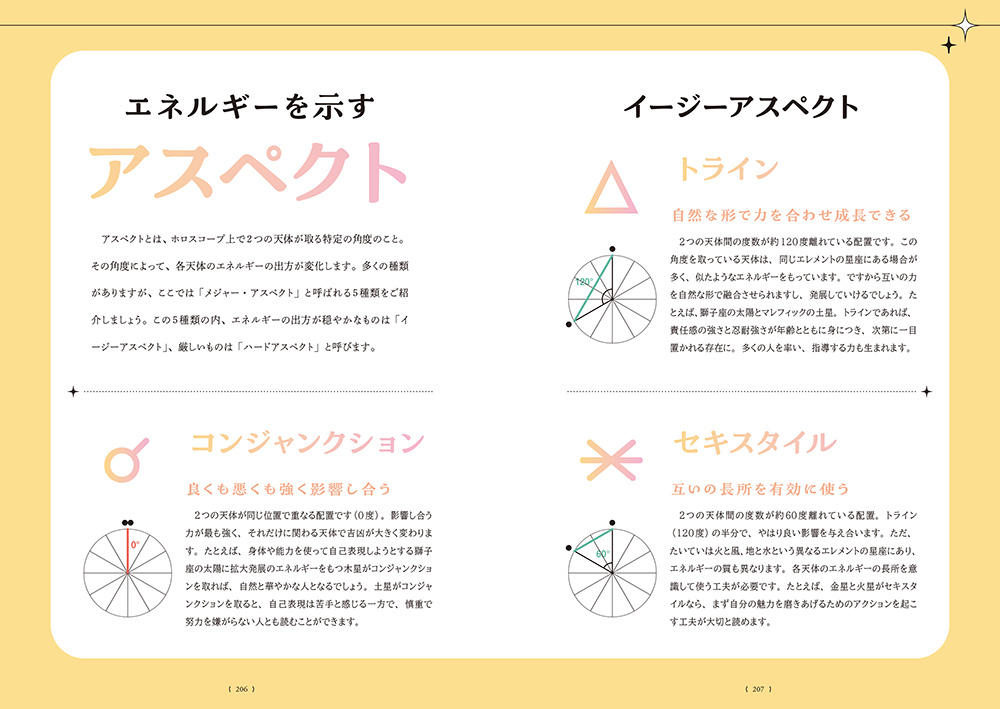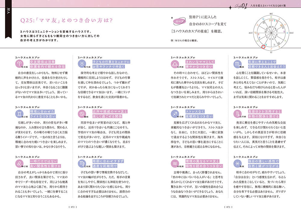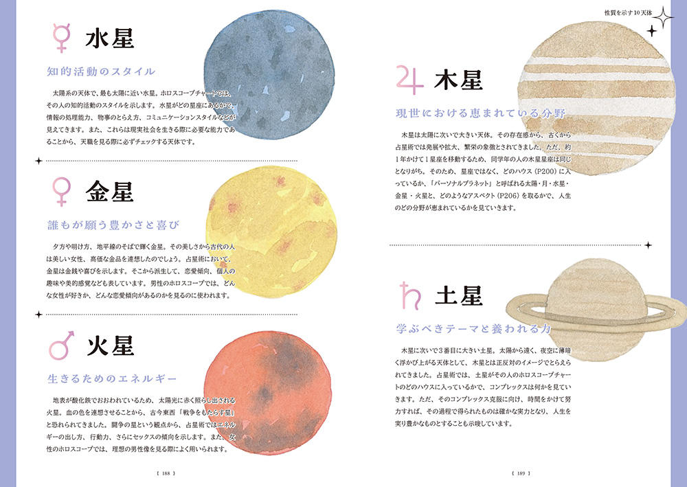 ●ホロスコープの基本情報も充実。占ってみて、もっとホロスコープについて知りたくなった方には、しっかりホロスコープの基礎知識もイラストや図解付きで解説。今まで、占いに興味のなかった初心者でも、これ一冊でOK!