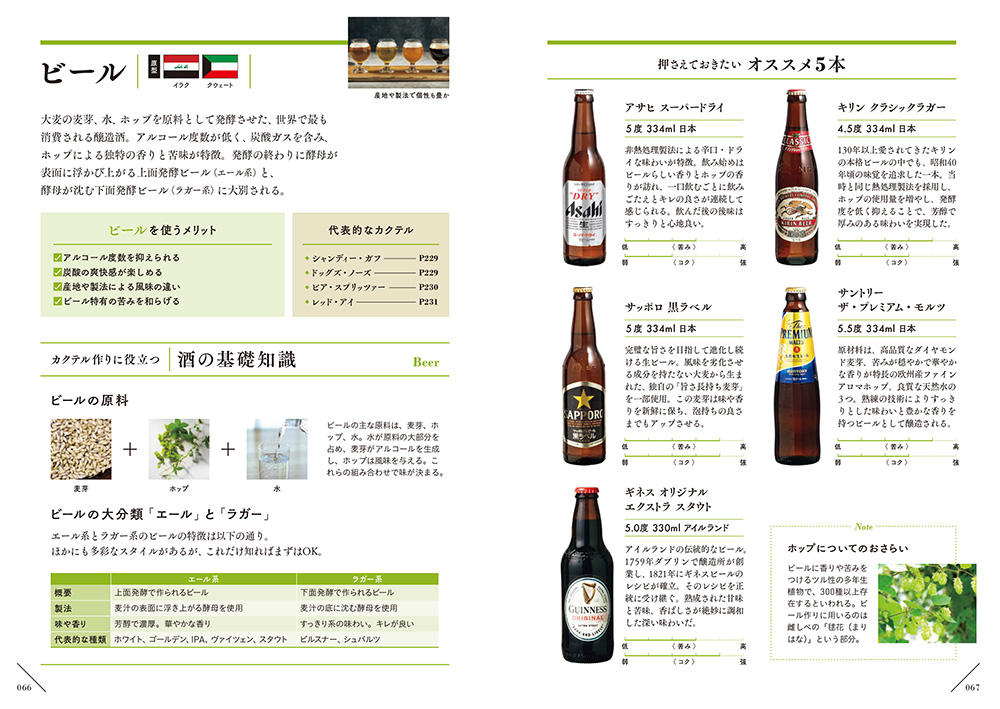 ●カクテルは同じ名前のカクテルでもバーテンダーによって味や見た目が異なることから、定番カクテル4種については、有名バーテンダー4名のレシピを見比べられる形で掲載。