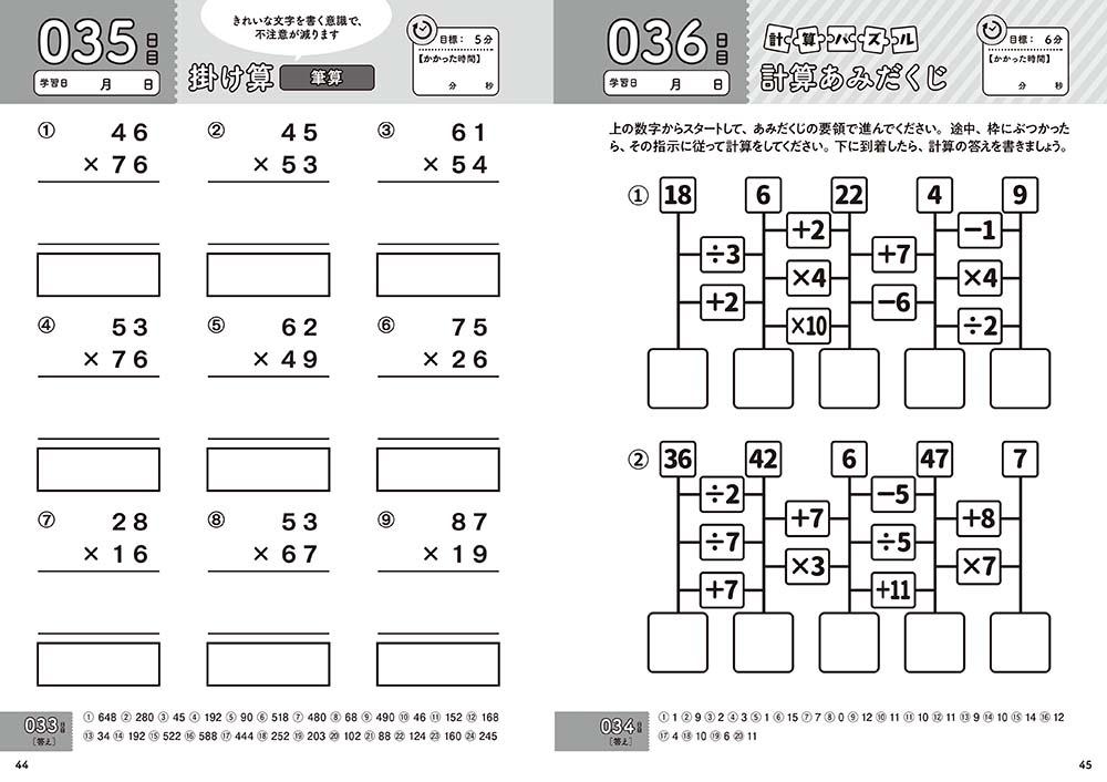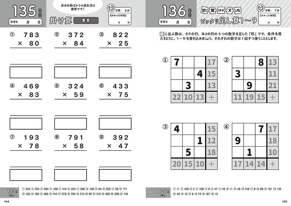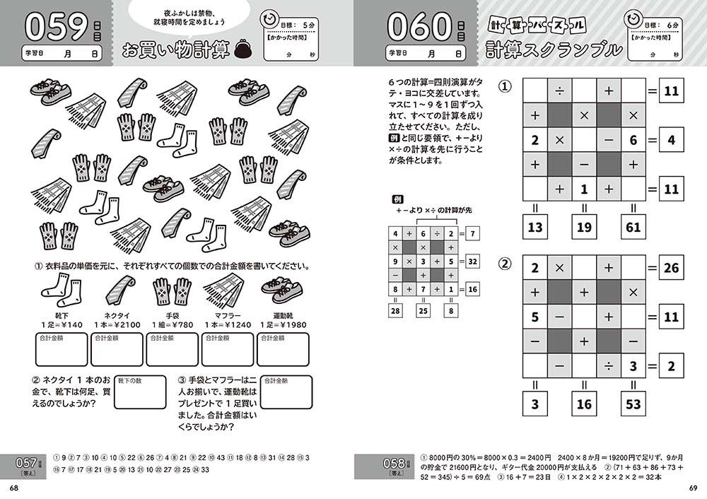 計算問題を中心に、文章問題、ひっ算、算数パズルなど豊富な問題バラエティー!脳をバランスよく鍛えます。