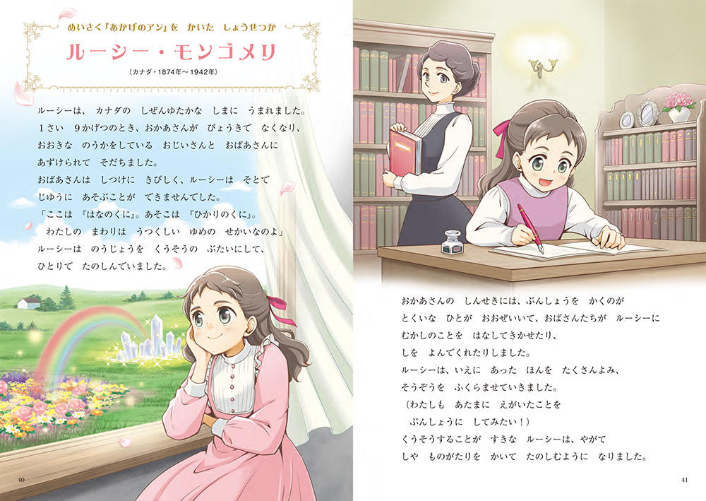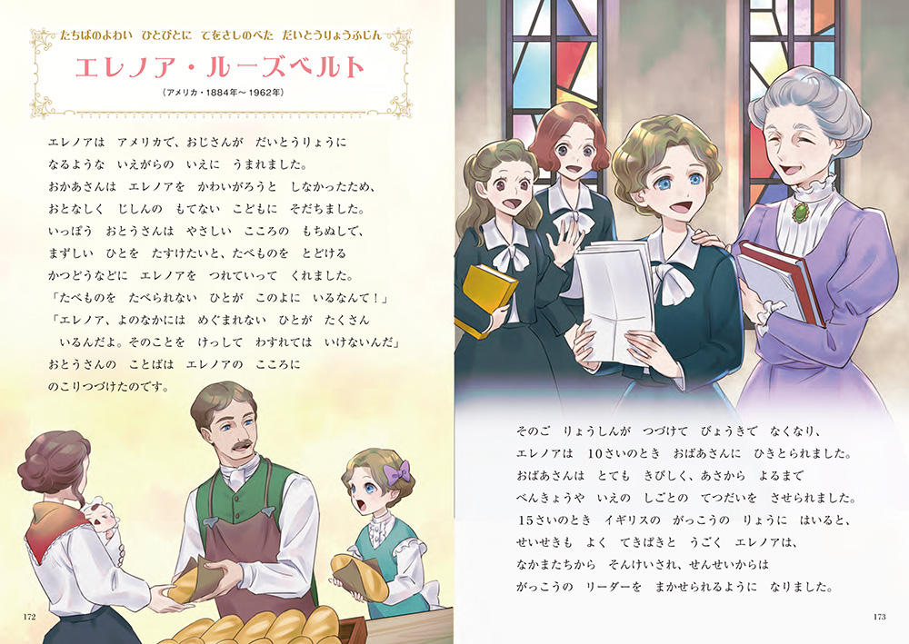 『みらいへはばたくおんなのこのでんきえほん』、『ゆめがひろがるおんなのこのでんきえほん』に続く、女性の偉人を集めた伝記絵本シリーズです。赤毛のアンの作者ルーシー・モード・モンゴメリ、伝説の女優キャサリン・ヘップバーン、日本の女性で初めてエベレストに登頂した田部井淳子など、自分の力で夢を叶えた女性たち、22人の物語を収録。かわいいイラストで子どもも夢中になって読めます。