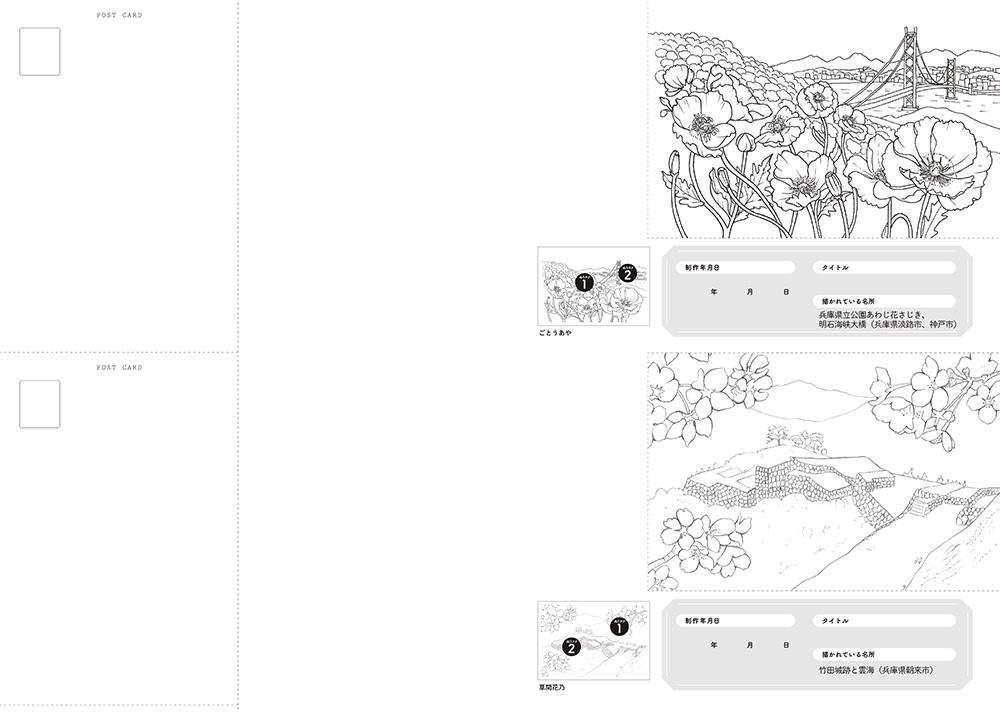 ・日本全国のさまざまな名所・名勝・イベントがぬり絵に。