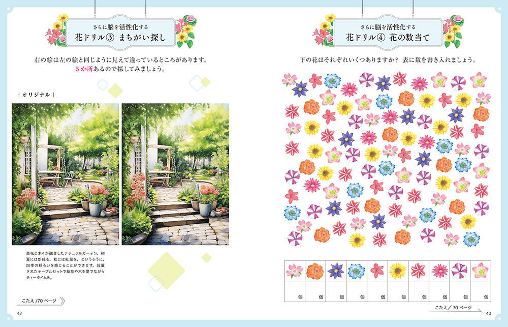 記憶力と集中力を鍛える花にまつわるクイズも収録されているため、脳トレ本としてもおすすめの一冊です。