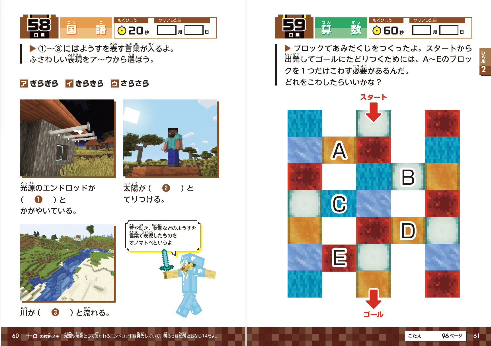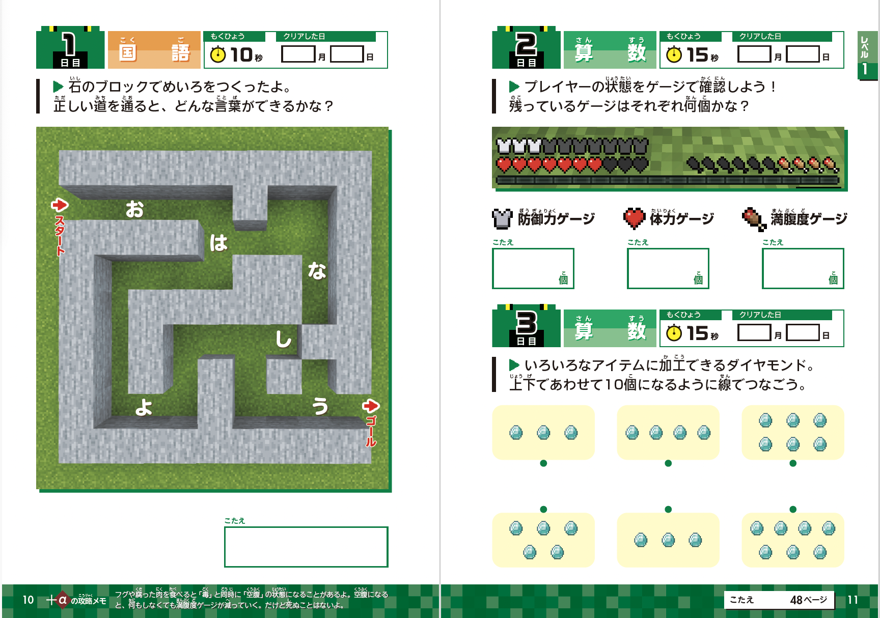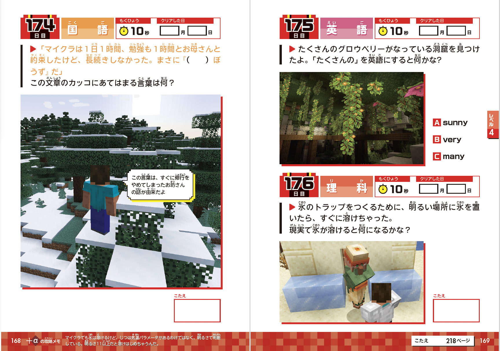 すべてマイクラに関連したクイズなので、勉強感なく楽しみながら自然と身につきます。