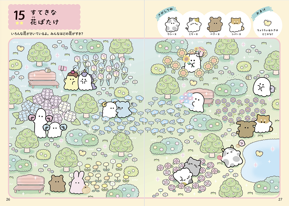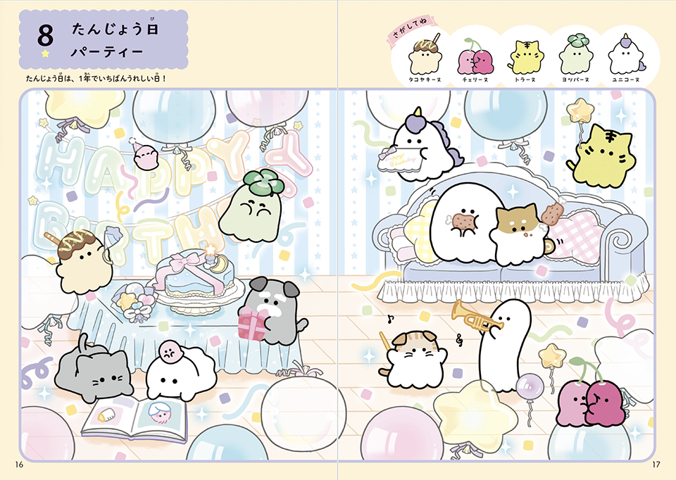 この本は、絵の中にひそんでいるオバケーヌたちをさがしてあそぶ、えさがしブック。