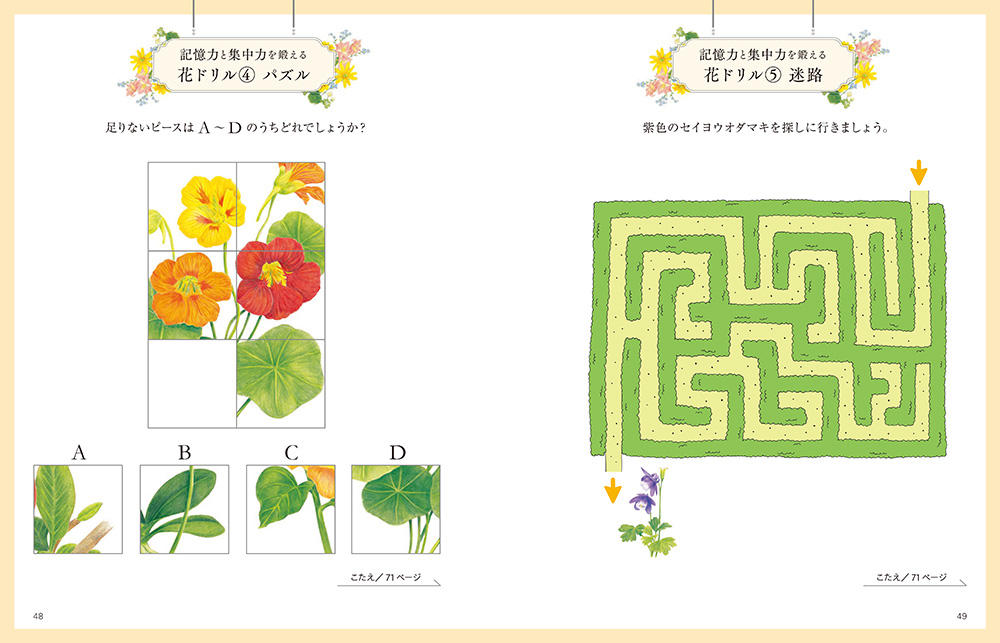 ・記憶力と集中力を鍛える花にまつわる脳トレクイズも収録しています。