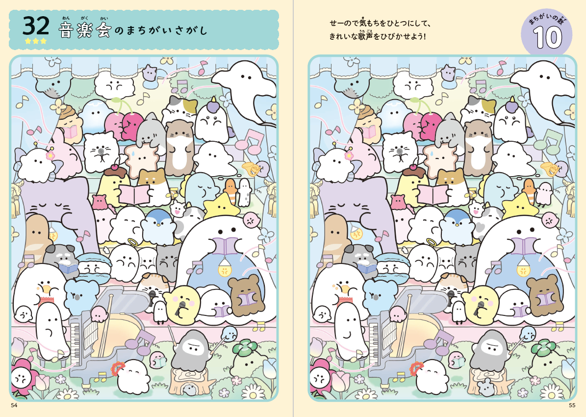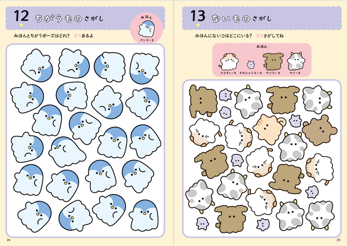 ながめてかわいい、さがして楽しい、夢中で遊べちゃうまちがいさがしブックです。
