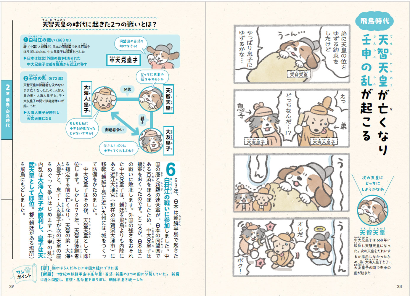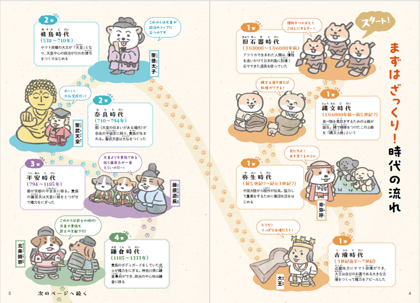 だから、日本史の大事なところを選んでゆるくてかわいい4コママンガにしました。