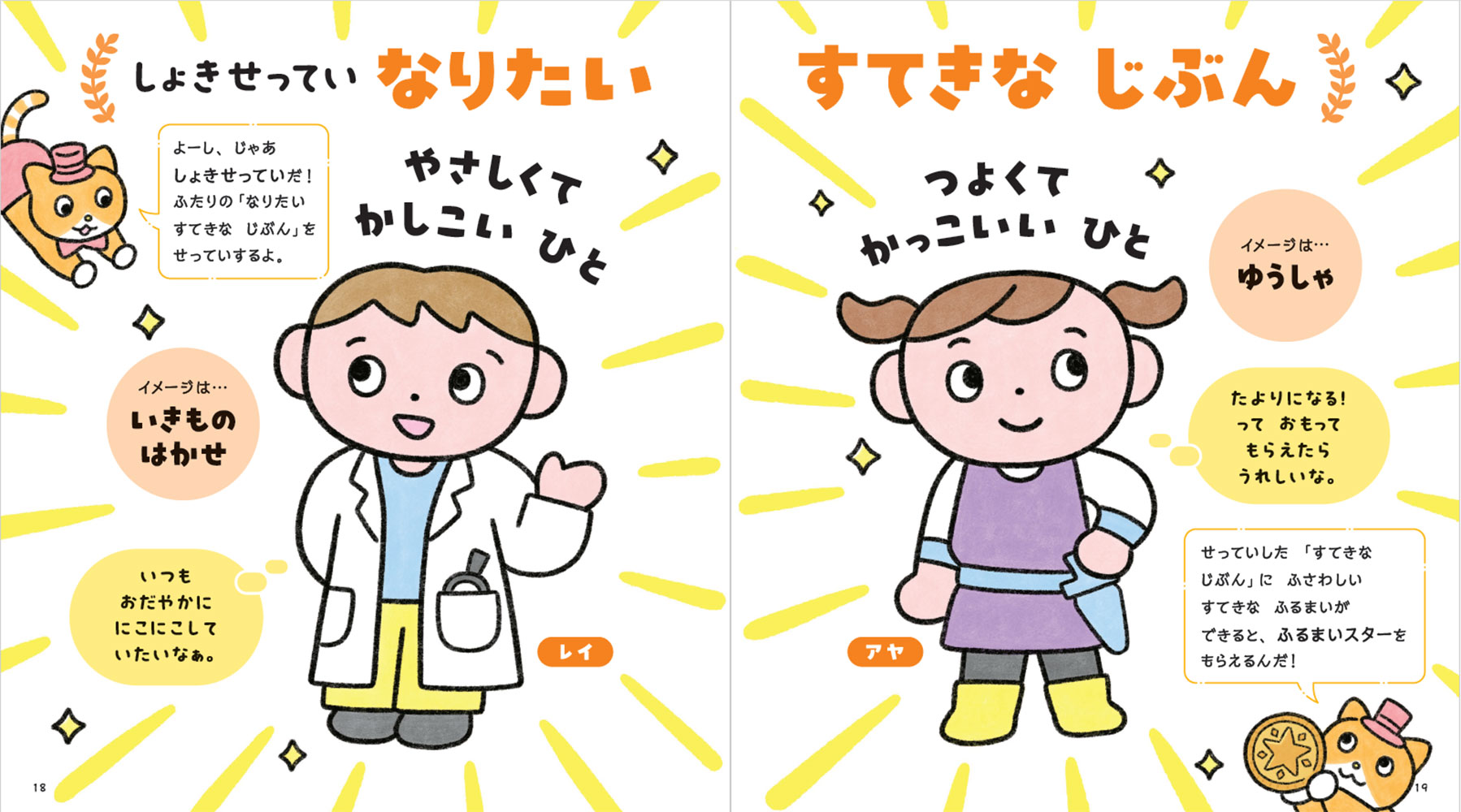 この本は、これから社会にとび出していくお子さんに向けた、「すてきなじぶん」を手に入れて「すてきなふるまい」ができるようになるための絵本です。