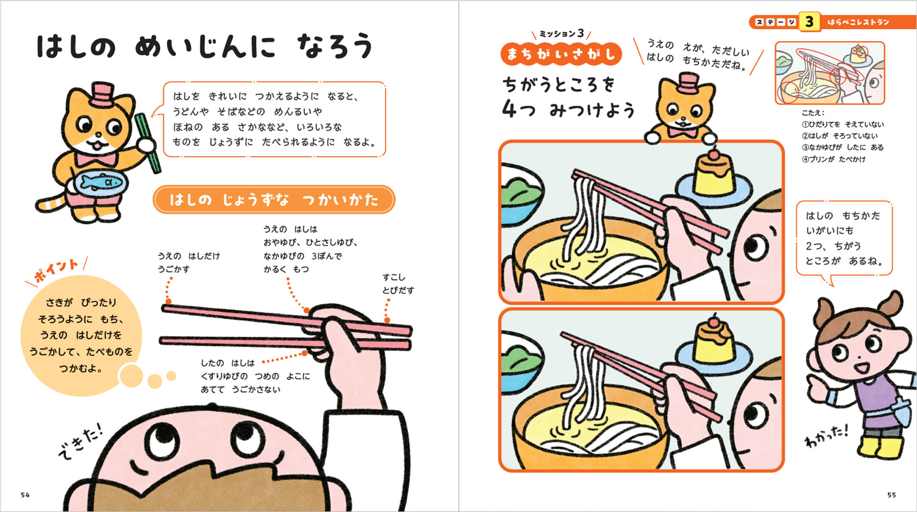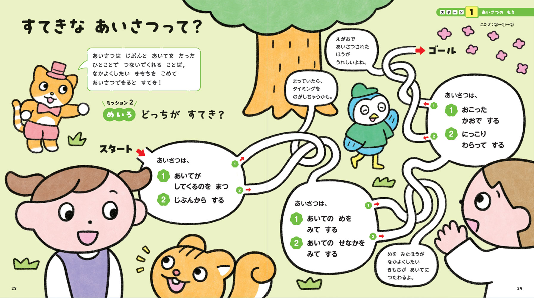 ●楽しいストーリー+まちがいさがし・えさがし・めいろ・クイズ・パズルの参加型絵本。遊びながら、笑いながら、どんどん「すてきなふるまい」が学べるしくみです