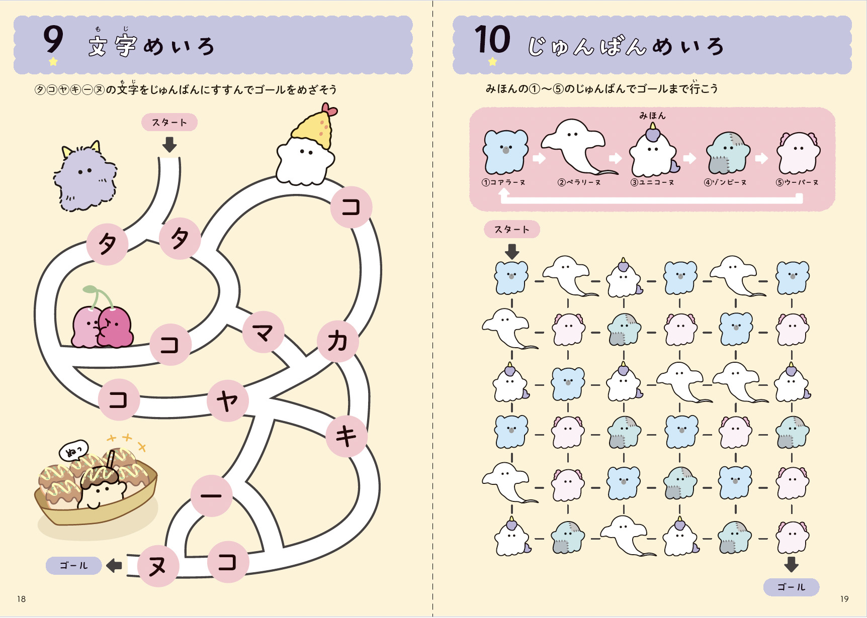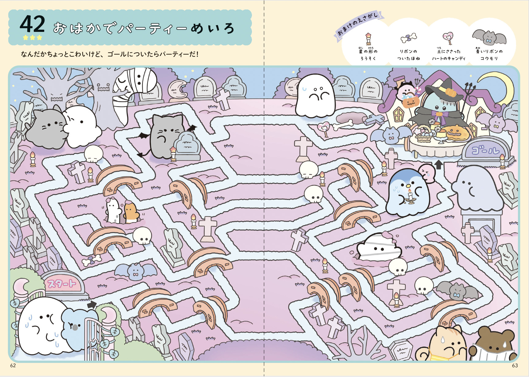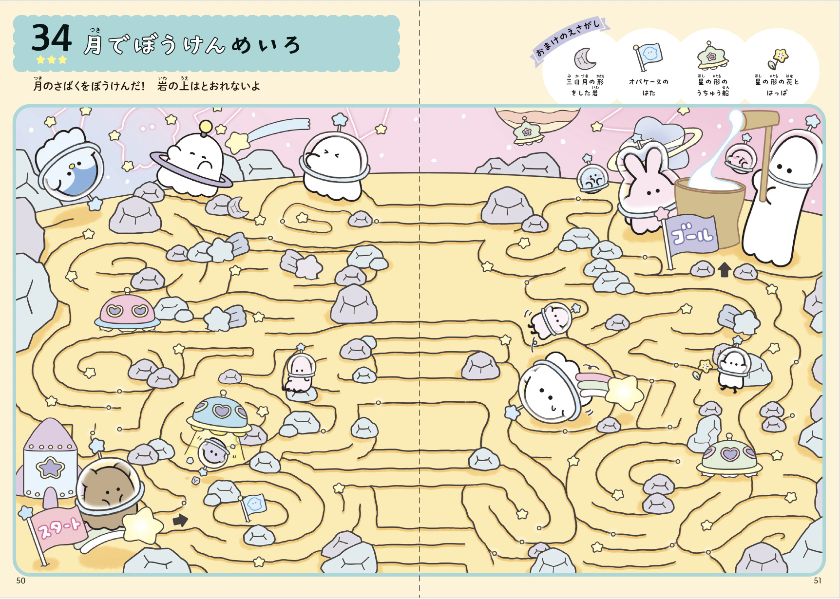 ピクニックめいろ/ドライブめいろ/森でおさんぽめいろ/おかしの国めいろ/ほうせきのしまめいろ/まほう学校めいろ など47問