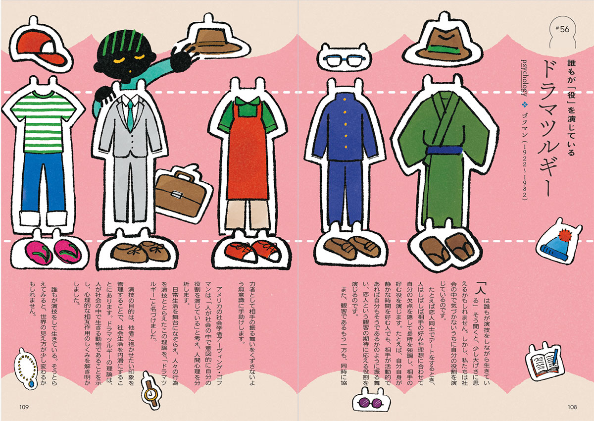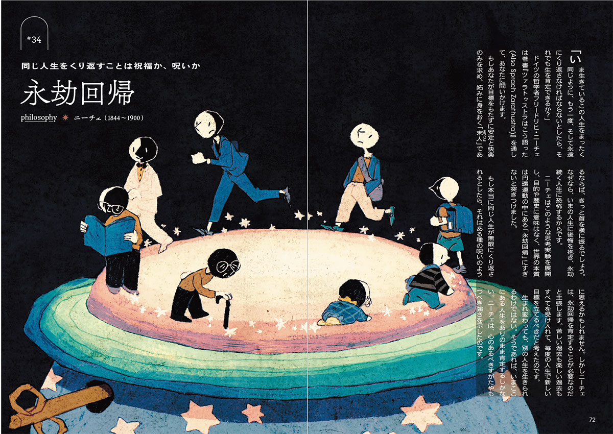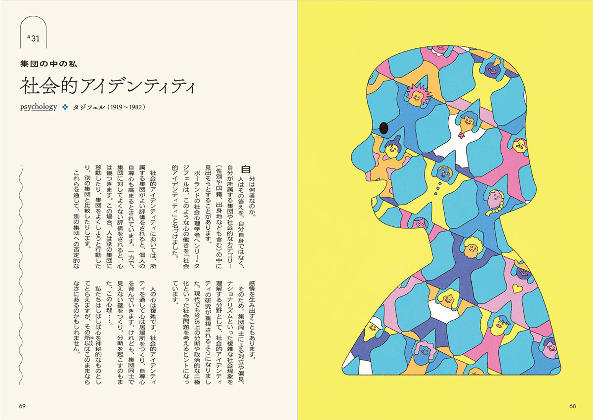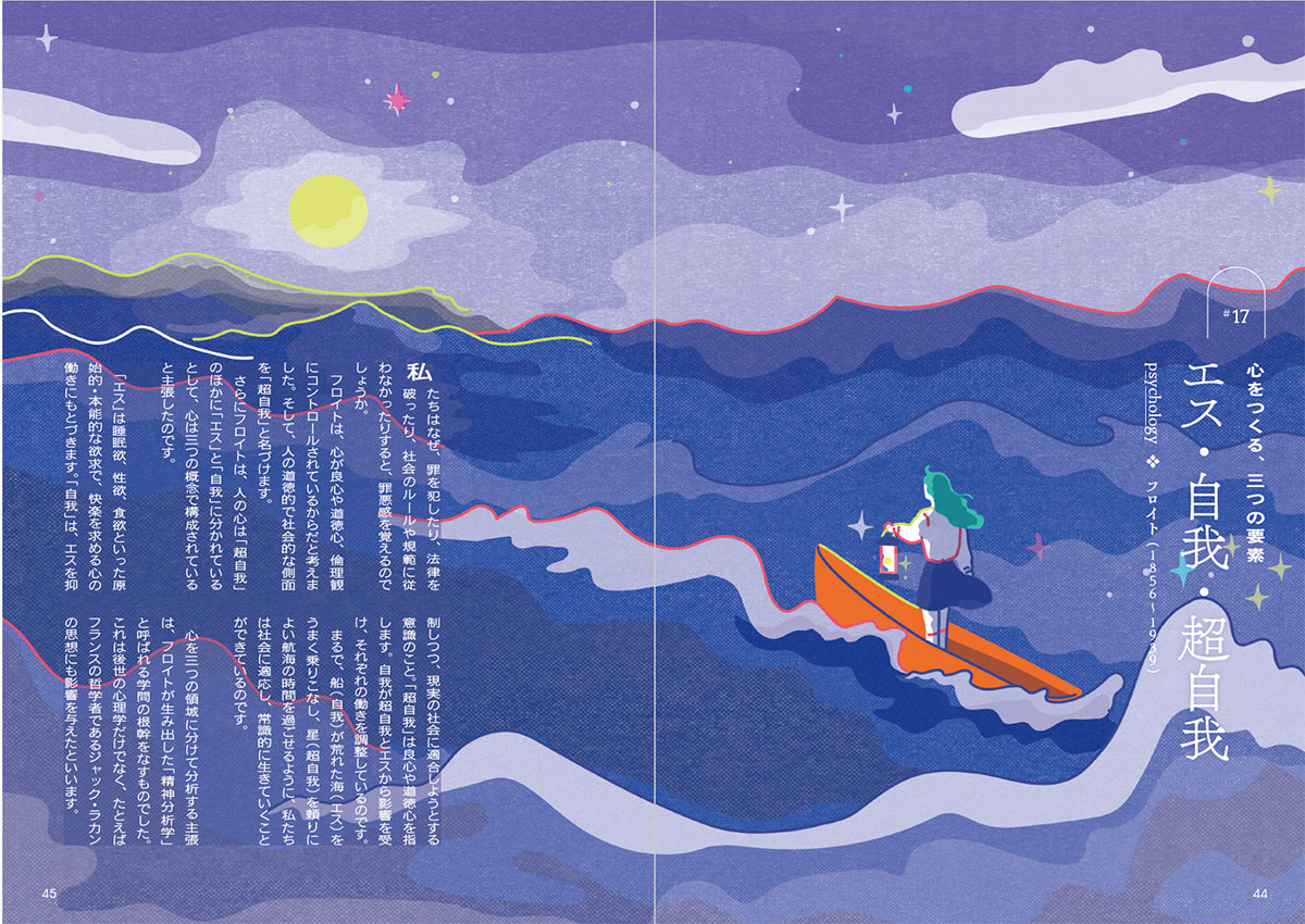 心にまつわる「哲学」「心理学」の100の学問用語を、16名のイラストレーターによる美麗イラストとともに紹介しています。